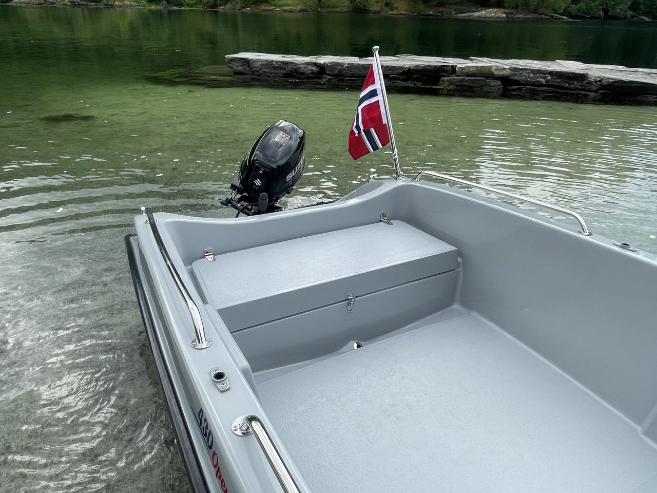The 430 Open has a high inboard side, making it very suitable for fishing.