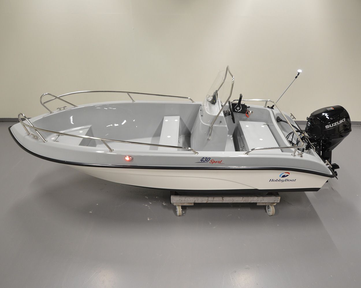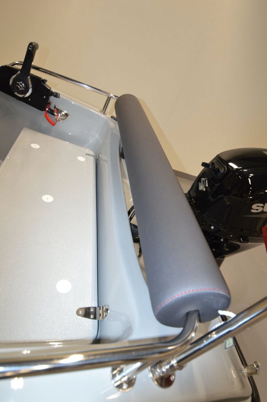 The Hobby 430 Sport has a large lockable compartment at the rear for the fuel tank and various equipment. There is also a lockable compartment for ropes, life jackets and other equipment.
