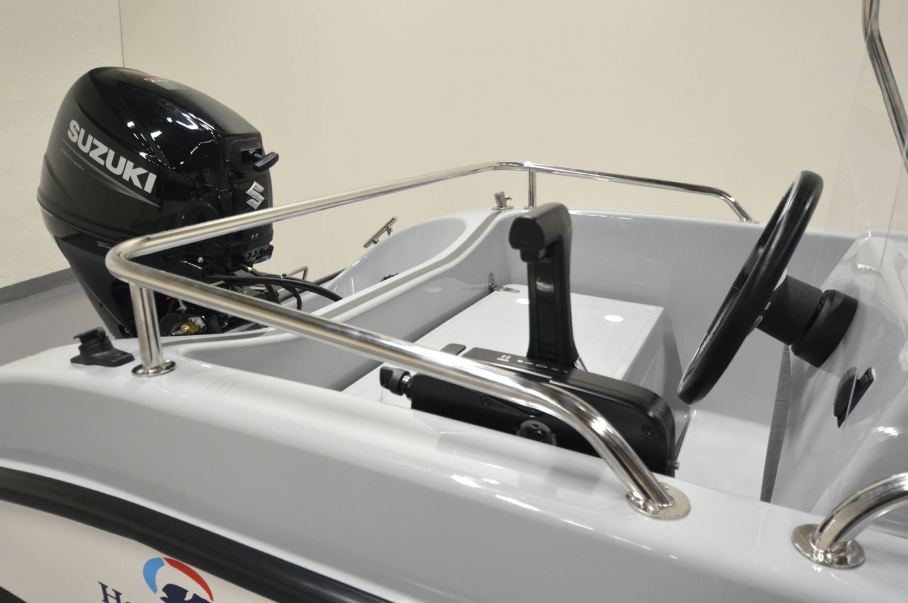 The Hobby 430 Sport has a large lockable compartment at the rear for the fuel tank and various equipment. There is also a lockable compartment for ropes, life jackets and other equipment.